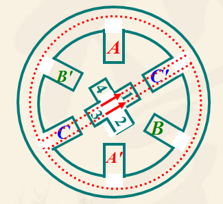 (1)BB' 磁場對 2、4 齒有磁拉力,該拉力使轉(zhuǎn)子順時(shí)針方向轉(zhuǎn)動。