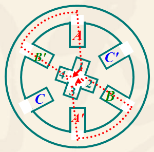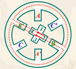A 相通電使轉(zhuǎn)子1、3齒和 AA' 對齊。
